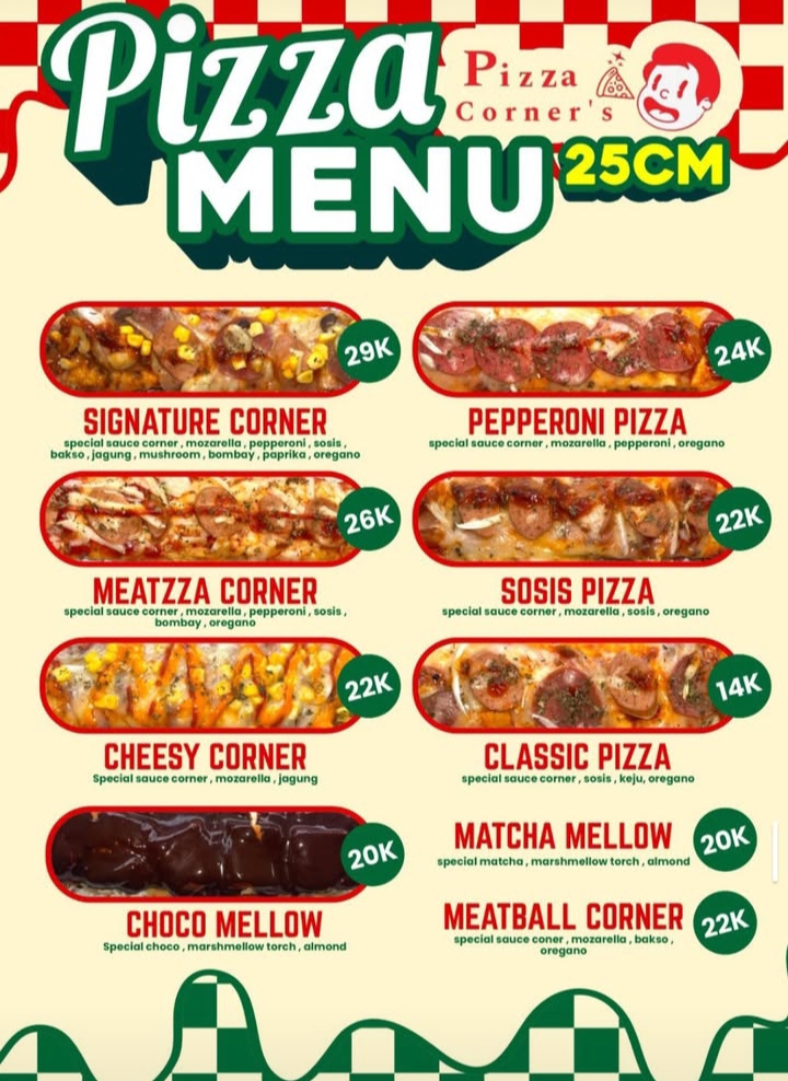 • Harga: Mid-range Pizza Corner’s Start From Rp 14.000, Untuk minuman Start From Rp.15.000 Worth it untuk kualitasnya!